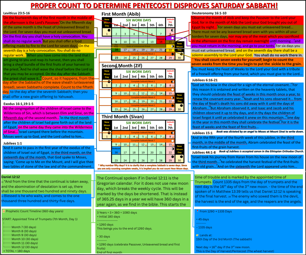 The reason I do it this way is because what I found when I was studying His word. You see if you count from the appointed time of trumpets, 1335 days, you will come to the same sabbath. That is, the Sabbath upon the 15th day of the third month. The next day is the day of harvest.