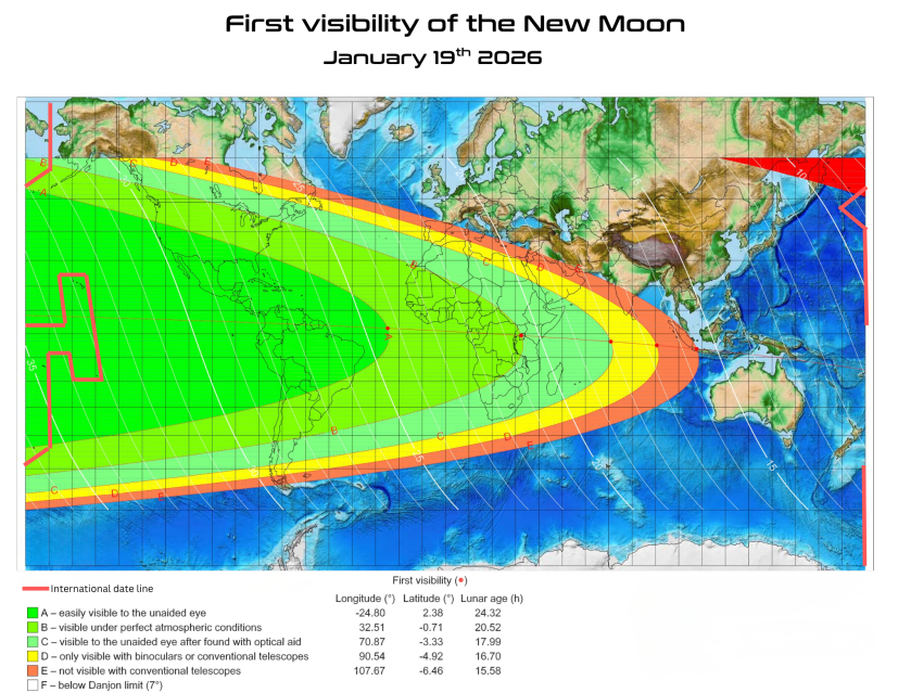 It’s also vital to understand that where the new moon is first visible depends on where you are on the earth. Because the moon’s visibility is influenced by both its orbit and Earth’s curvature, the thin crescent often becomes visible first in regions closer to the western edge of the inhabited world — such as the Middle East or Africa — and then progressively later as the earth rotates eastward.