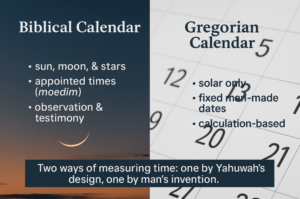 This comparison highlights why Yahuwah’s moedim cannot simply be “translated” into the Gregorian system. They are not meant to conform to man-made constructs; they are written in the heavens.